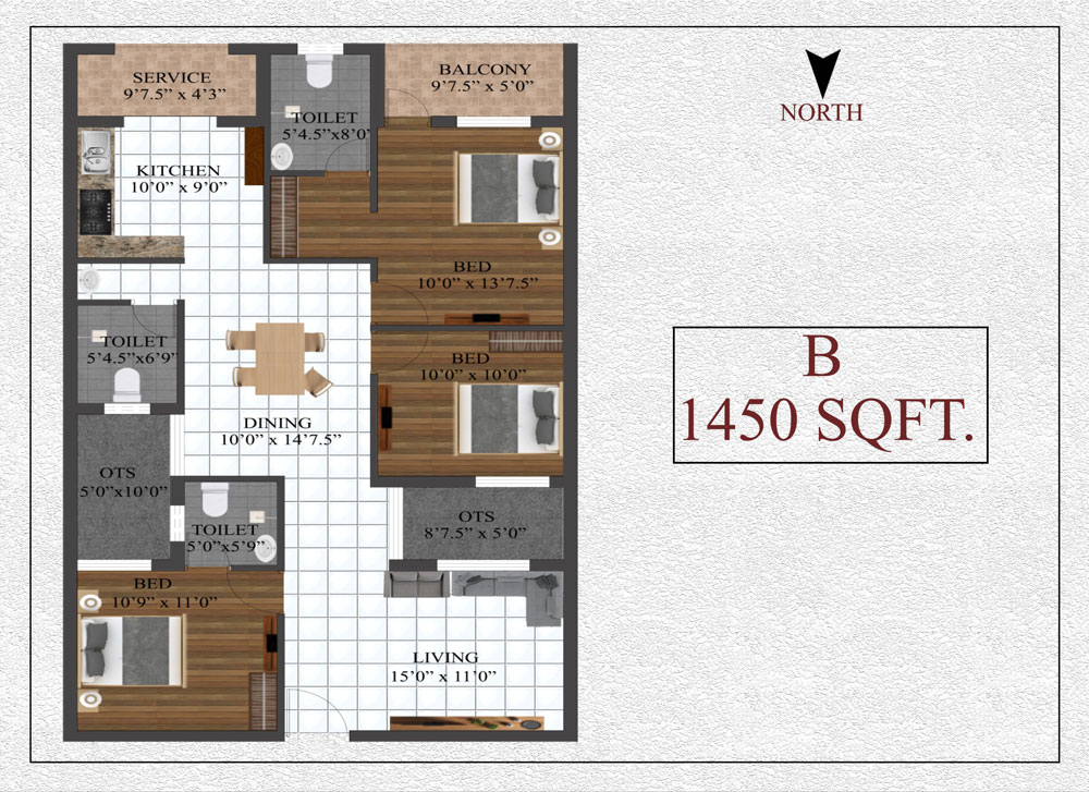 Three phase Power Supply with circuit breaker. A/c provision for all the bedrooms. Exhaust fan provision for kitchen and all the bathrooms. DTH TV Point for TV in living room and in master bedroom. Foot lamp in all the Bedrooms. Telephone point in living room & MBR.
