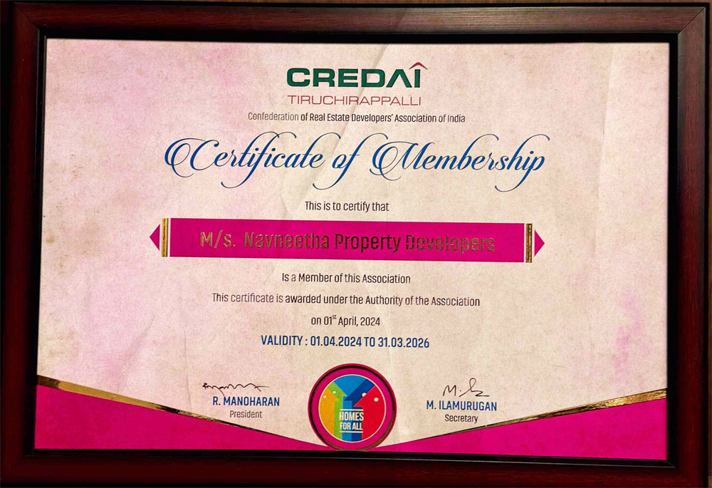 Choosing a Navaneetha property means investing in a lifestyle of comfort, quality, and peace of mind. We are dedicated to delivering not just homes, but legacies – spaces where families flourish, businesses thrive, and dreams find their true address in Tiruchirappalli.